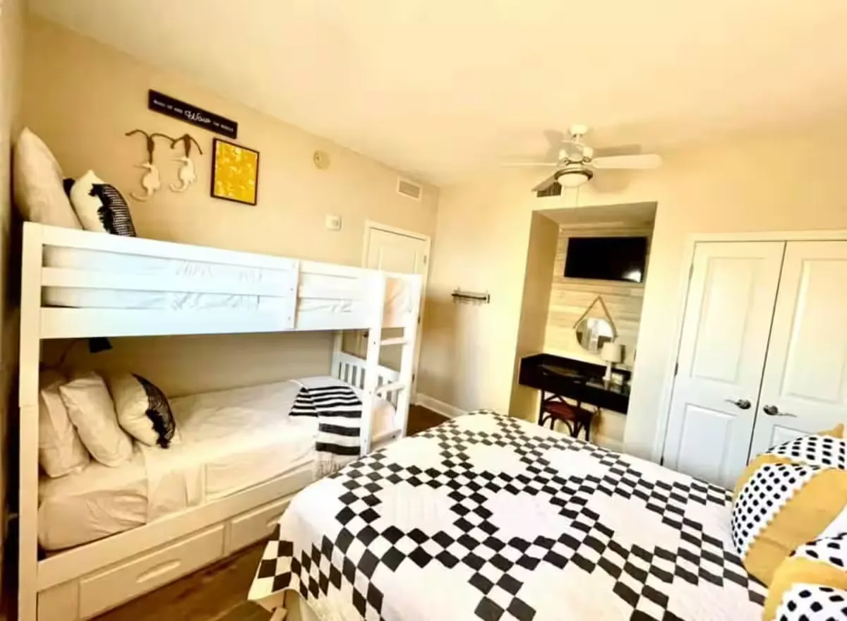 June-13 2024We’ve been coming to PCB/Destin for years snd this is probably the cutest, most spacious condo we’ve rented before. There was plenty of room for our family of 5 and we easily could’ve had a few more! They had everything we needed to get started in the condo. Beds were comfortable, balcony was big and peaceful, and the walk to the beach was easy. We will definitely look at renting this condo again in the future!